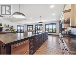 This custom-built country bungalow, where craftsmanship meets comfort is an exceptional family home nestled in the rolling hills of Erin. Set on just under 9 acres of gently sloping lawns, a spring-fed pond, and endless outdoor beauty. From the moment you step inside, you'll feel the care and quality that went into this cabinetmakers personal residence. Striking details, soaring ceilings, and an open-concept layout set the stage, while over 200+ custom-built storage drawers keep family life beautifully organized. The heart of the home is a chefs dream kitchen, featuring solid wood cabinetry, high-end appliances, a massive quartz island with breakfast bar, and endless cupboard space. Gather in the great room around the fireplace, or share meals in the dining room as you soak in panoramic views of the countryside through the windows. Step outside to the elevated, covered balcony and catch unforgettable sunsets, your new favourite place to unwind. The main-floor primary suite is your own private retreat, with a coffered ceiling, spa-inspired ensuite, and a walk-in closet with built-ins that maximize both function and style. Two additional bedrooms offer the same high-quality finishes and thoughtful design. Head downstairs to discover the ultimate entertainment zone, a fully finished walk-out lower level with a large wet bar, cozy fireplace, theatre room, home office, and even a sauna. And then there's the workshop, an incredible 5,000 sq. ft. heated building with three 16x16 insulated doors, ideal for car enthusiasts, hobbyists, or entrepreneurs. Add in a 3-car garage, geo-thermal heating and cooling, in-floor heating throughout the basement and shop, fire pit & your family has found a forever home. This property doesn't just offer a place to live, it offers a lifestyle. From peaceful birdwatching by the pond to hosting unforgettable gatherings, this is country living reimagined for the modern family. This is where your family story continues. (id:50886)