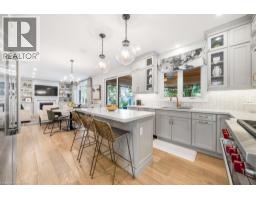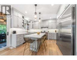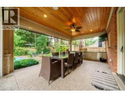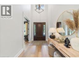 Welcome to 89 Lloyminn Avenue, a spectacular 4+1 bedroom, 3.5 bathroom home offering over 4,000 sq.ft. of finished living space on a premium 75.37 x 139.94 ft. lot in one of Ancaster’s most sought-after neighbourhoods. Built in 2017, this custom residence combines timeless elegance with modern comfort, featuring hardwood flooring throughout and high-end finishes. The main level includes a private den, formal dining room, mudroom with access to a 3-car garage, and a chef-inspired kitchen with large island, butler’s pantry, and premium stainless steel appliances including a Wolf stove. The kitchen opens to a bright living room with gas fireplace and direct access to a covered lanai with retractable screens, outdoor kitchen, and dining area—an ideal space for entertaining. Upstairs, the primary suite offers a walk-in closet and spa-like 5-piece ensuite, alongside three additional bedrooms, a second 5-piece bathroom, and a convenient laundry room with sink. The fully finished lower level expands the living space with a spacious recreation room, custom bar, additional bedroom/playroom, and 3-piece bath. Outdoors, enjoy a private retreat with a heated in-ground pool with auto cover, wood-burning sauna, full irrigation system, and mature trees providing privacy and tranquility. Close to top-rated schools, parks, recreation facilities, and all major amenities, this exceptional property offers the perfect blend of luxury, comfort, and lifestyle. (id:50886)
