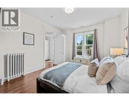 Spectacular blend of old-world grace & modern comfort! Meticulously fully renovated century home located in the quaint West Flamborough village of Lynden. This 4-bed, 4-bath gem tastefully combines classic historic charm w contemporary luxury. It features high ceilings throughout, 9.5-ft on the main floor, 12-ft in the family room, and 9-ft on the 2nd floor (except office/bedrm), carpet-free floors incl travertine, porcelain and luxury vinyl plank. Ground level family room equipped w radiant heated floor, auto Smart blinds, surround sound, 82 mounted TV, and a walkout to patio & beyond! Custom kitchen(15/16) w heated floor, high cabinets, Quartz, pendant lights & pantry, and a separate dining room w handy Butler bar. The 2nd floor offers 3 spacious bedrooms, access to the front balcony, a luxurious bathroom w claw-foot tub & glass shower w multi-function panel. Laundry room w a flex space, cabinets, folding area & w/o to rear deck. Oak stairs w wrought iron spindles lead to the skylit & spray-foam-insulated 3rd level primary retreat featuring a wet bar, its own balcony, reading nook, W/I closet and a sliding barn door to a 7-pce ensuite w skylight, heated floor, water closet, slipper tub, double sink vanity & a double shower! The exterior boasts a 6-car driveway(23),concrete walkway & porch(21/22), a fully fenced stunning rock landscaped yard(23) appointed with a gazebo, gas BBQ hookup, firepit, 3 sheds including a 20'x12' bunkie/workshop, and a 17 year-round Swim Spa(23)! Modern conveniences include city water, natural gas, electrical service panel w 220-amp(23), Smart Home Features ie. thermostats, switches, locks & more, BellFibe Network, central A/C(23), and C/VAC throughout the home. Other features & updates include stained glass, transom windows, exterior doors, gutter guards(23), re-shingled roof(21), windows(2018/19), and complete re-plumbing & re-wiring (2016-2024). This home truly combines historic elegance with contemporary amenities. (id:50886)