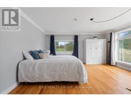 Discover peace, privacy, and charm in this gorgeous 4-bedroom, 2-bath custom-built home surrounded by 31.82 acres of rolling countryside, trails, and breathtaking views. The main level features a spacious living room with a rustic brick focal wall, rich wood floors, crown moulding, pot lights, an electric fireplace, and a walk-out to the yard. The bright, open kitchen offers plenty of storage, a subway tile backsplash, and a walk-out to the large, covered porch - perfect for enjoying morning coffee or evening sunsets overlooking the woods. The cozy dining area with wood-burning stove and French doors adds warmth and character, creating the ideal setting for family gatherings. The primary bedroom is a true retreat, featuring a soundproofed wall (backing onto the living room) for peaceful rest. A stylish 3-piece bath completes the main floor. Upstairs, you'll find an updated 4-piece bath with ensuite laundry and three generous bedrooms, all filled with natural light. Upgrades include a new water system (UV, filter, and softener - all owned), tankless hot water heater (owned), propane wall furnace (no tank), septic alarm system, updated electrical (interior and exterior), newer well pump and newer septic pumps. The property is a nature lover's dream, with fruit trees, stunning lilac fields in the spring, and even your own Sugar Shack for tapping maple syrup. Enjoy the perfect blend of rural tranquility and convenience - just minutes to schools, Walmart, restaurants, and only 10 minutes to Hwy 401 and the beaches and wineries of Prince Edward County. You'll want to see this exceptional property in person-it truly has it all! (id:50886)