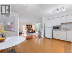 $487.41 MonthlyWelcome to one of Brantford's most desirable and well-managed condominium buildings! This bright and inviting 1-bedroom unit offers comfortable, low-maintenance living with everything you need in a thoughtfully designed layout. Inside, you'll discover a spacious living room, cozy dining area, in-unit laundry, and a versatile storage room. The renovated 3-piece bathroom offers sleek, modern finishes, while the private balcony is the perfect spot to enjoy your morning coffee or unwind in the evening. This unit also comes complete with a dedicated parking space and a private storage locker. Residents of this sought-after building enjoy access to a range of amenities, including a well-equipped gym, a party room for gatherings, secure entry, elevators, and ample visitor parking. Condo fees include snow removal, landscaping, building maintenance, water, building insurance, and even windows, offering exceptional value and peace of mind. Ideally located on a quiet cul-de-sac in Brantford's North End, you're just minutes from highway access, public transit, shopping, and restaurants. Whether you're a first-time buyer, downsizer, or investor, this is a rare opportunity to enter this well-cared-for building with a strong community feel. (id:50886)