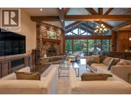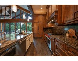 Step into timeless elegance w/ this custom-built, 3,604 sq ft stone ranch—a home where craftsmanship meets comfort, & every detail whispers luxury. From the moment you arrive, the rustic charm of this one-of-a-kind retreat captivates; w/ soaring 16-ft vaulted ceilings, exposed beams, & rich custom woodwork setting a warm & intimate tone. A wood-burning fireplace anchors the heart of the great room, perfect for cozy evenings. The gourmet kitchen is a dream for anyone who loves to cook or entertain—featuring Cambria quartz countertops, a 48"" wolf stove, pot filler, & stunning floor-to-ceiling cabinetry. A discreet chef’s pantry w/ outside access adds a touch of old-world luxury & convenience. W/ over 6400 sq ft of finished living space (plus an addt'l 1300 of finish-able living space), &10-ft ceilings throughout both the main floor, space and light are abundant. The home is thoughtfully designed to balance grandeur w/ livability, including solid wood interior doors, dual HVAC, built-in speakers, automatic blinds, and an entire home automation system. The primary suite is a private sanctuary w/ direct access to the backyard oasis, soaring 16ft vaulted ceiling w/ exposed beams, dual walk-in closets, & a spa-inspired 5-piece ensuite w/ heated floors. Outdoors, luxury continues. The professionally landscaped backyard is a true retreat, complete w/ a massive covered porch, built-in BBQ, saltwater pool, & stone gas fireplace. Whether it’s quiet evenings under the stars or lively gatherings with friends, this space was designed to bring people together. Insulated 2.5-car garage, w/ heated floor & oversized 10x12 ft doors is perfect for hobbyists or adventurers. Metal roof offers peace of mind for years to come. Additional highlights include two wet bars, coffee/wine bar, a basement walk-out, underground irrigation & sprinkler systems and countless luxury upgrades throughout. Close to Kingsville Harbour, Lakeside Park, great schools, & amazing restaurants/shops. (id:50886)