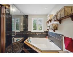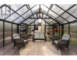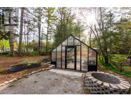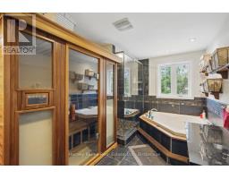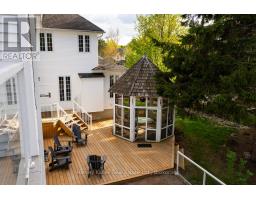 Extraordinary, postcard perfect curb appeal at this sophisticated and stunning 4-6 bedroom, 5 bathroom, 2 storey home, serving up exciting and sleek architectural details, with an invigorating layout, comfortable for just a couple, yet with a family friendly spirit. Over 5,100 sq. ft. of beautifully flowing living space. Exquisitely positioned, in-town, on full municipal services, within walking distance of amenities, yet exclusively nestled on a quiet and secluded true 'cul-de-sac'. Melane Court is unquestionably one of Bracebridge's finest addresses. Built in 2002 and originally owned by the builder, the home stands proudly with a beautiful wrap-around covered southwest facing porch, with a cleverly tucked away attached 4-car garage along the side with paved drive, ample parking, on a large 1/2 acre lot with fully fenced garden oasis back yard. Inside, a dramatic 2-storey foyer beckons with its curved staircase. The main floor features a solar southerly office/den, hardwood floors, formal living room, dining room, eat-in kitchen, and separate family room. Plus a handy mudroom, powder room, and MF laundry room. Upper level presents 3 sizeable bedrooms plus a loft, one with an ensuite privilege, one fully ensuited, plus the 1,100+ sq. ft. primary wing featuring a private den/T.V. room, walk-in closet, ensuite with soaker tub, sauna, studio, and walk-out to deck. Finished lower level is a flexible space with access from the garage, 3 pc. bath, ample storage, bedroom, gymnasium, and rec. room. Potential to create a nanny's suite with the basement. 10 kW back-up generator, central air, forced air gas heat, multiple fireplaces. Newly resurfaced back deck and large patio area with custom greenhouse, and separate gazebo enliven outdoor living. An executive family home in a neighbourhood where very, very rarely is anything offered for sale. This is a truly exemplary offering exuding so much warmth and charm, with features and facets everyone desires. (id:50886)