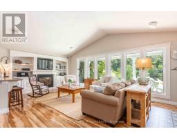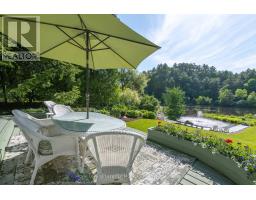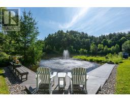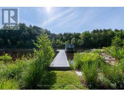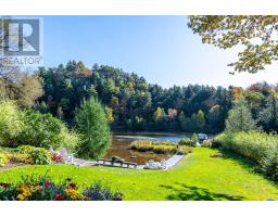 Complete privacy featured on one of the best lots on Muskoka River on one of the quietest in town streets in Huntsville. The gently sloped thoughtfully and professionally landscaped property offers a private cove with a fabulous fountain and spectacular view of the Lookout mountain and Muskoka forest...you will forget you live only a couple of blocks to the vibrant downtown core. The lovely recreational residence is nestled back from the road and is a stand out from the street or the river. Beautiful 4 bedroom home has been a beloved family cottage for many years. The interior features the quintessential open concept primary rooms with vaulted ceilings and window wall overlooking your breathtaking property and riverfront. Living room with attractive gas fireplace, kitchen seating at counter, dining suitable for those who like to entertain, main level family or sitting room with views of your porch and gardens. Hardwood floors, front foyer with arched entry, bedrooms with corner windows to maximize natural light, are all thoughtful design features of this beautiful home. The 2nd level is an ideal office or kids room. Lower level features another bright beautiful room currently used as a bedroom but can be a gym, office or whatever you may need. The double car garage has a rear door for lawn mower, kayaks, etc. The lot features a private cove with a high end composite walkway around it and an idyllic fountain in the middle. The dock is also composite and has ample space for your boat parking. There is a large patio on the riverside for dining and bbqing. Another granite sitting area is for thoughtful viewing of the panoramic views that you will want to take in with your coffee or glass of wine. The lot, the residence, and the views create a rare package that is difficult to find. This one of a kind opportunity includes some furnishings and could be available for you to enjoy mid August or after. (id:50886)