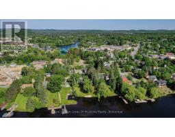 Complete privacy featured on one of the best lots on Muskoka River on one of the quietest in town streets in Huntsville. The gently sloped thoughtfully and professionally landscaped property offers a private cove with a fabulous fountain and spectacular view of the Lookout mountain and Muskoka forest...you will forget you live only a couple of blocks to the vibrant downtown core. The lovely recreational residence is nestled back from the road and is a stand out from the street or the river. Beautiful 4 bedroom home has been a beloved family cottage for many years. The interior features the quintessential open concept primary rooms with vaulted ceilings and window wall overlooking your breathtaking property and riverfront. Living room with attractive gas fireplace, kitchen seating at counter, dining suitable for those who like to entertain, main level family or sitting room with views of your porch and gardens. Hardwood floors, front foyer with arched entry, bedrooms with corner windows to maximize natural light, are all thoughtful design features of this beautiful home. The 2nd level is an ideal office or kids room. Lower level features another bright beautiful room currently used as a bedroom but can be a gym, office or whatever you may need. The double car garage has a rear door for lawn mower, kayaks, etc. The lot features a private cove with a high end composite walkway around it and an idyllic fountain in the middle. The dock is also composite and has ample space for your boat parking. There is a large patio on the riverside for dining and bbqing. Another granite sitting area is for thoughtful viewing of the panoramic views that you will want to take in with your coffee or glass of wine. The lot, the residence, and the views create a rare package that is difficult to find. This one of a kind opportunity includes some furnishings and could be available for you to enjoy. (id:50886)