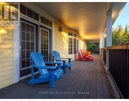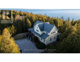Listen to birdsong and breathe in the soft, cool scent of cedar as you follow a flagstone path to the ocean-like expanse of Lake Huron. Swim, kayak, or hunt with the little ones for fossils, minnows, and crayfish. Marvel at spectacular sunsets, starry skies, and the dazzling Aurora Borealis. Explore the rugged terrain of the Bruce Trail, the sandy beach at Black Creek Provincial Park, and the dive sites at Tobermorys Fathom Five National Marine Park. This fully furnished turnkey cottage, set in Greenough Harbours forested serenity, graces a 1.9-acre lot with 164 ft. of pristine rocky shoreline and western exposure. A covered deck wrapping three sides invites elegant entertaining, quiet reading, or basking in natures beauty. Enter the 3,100 sq ft, professionally decorated home spread over three levels, and be captivated by open-concept living, soaring ceilings, generous windows, and in-floor heating throughout. Host family and friends or retreat to a peaceful nook. With a built-in speaker system and home theatre, every detail gleams in this pristine, modern retreat. The fully equipped custom kitchen features a large island, pull-out drawers, double sink, stainless steel appliances, and a warming drawer ideal for culinary creativity. The spacious primary suite opens onto the deck with a walk-in closet and a 4-piece ensuite with double sinks. Upstairs, a reading loft overlooks the living space with treetop views of the water, while two generous bedrooms boast closets and ensuites. The lower level adds flexibility with a Murphy bed, separate entry, 3-piece bath, laundry, and ample storage for outdoor gear. Explore your own forested landscape, a tranquil Bruce Peninsula ecosystem where little ones can play, and all ages can connect. Original owners - Pride of ownership shown throughout. This property redefines luxury cottage living! Swim by day, stargaze by night, and feel at home. (id:50886)
