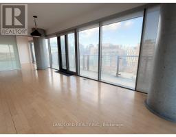 Vacant, move in ready, professionally-managed unfurnished east-facing corner suite set within Toronto's Distillery District! Parking included. Larger-sized (floor plan attached to listing) space-efficient two bedroom two bathroom layout blessed in all rooms with wall to wall floor to ceiling windows looking east and north over the suite's own wrap around balcony. Both bedrooms generously sized, each with direct bathroom access. Primary bedroom in particular enjoys room-wide sliding glass door access to both its ensuite and walk in closet. Features and finishes include: hardwood flooring, stone kitchen countertop and backsplash with under cabinet lighting, stainless steel appliances, roller shades on all windows, all existing light fixtures, large foyer/entrance closet, entrance set back from main living area for more privacy. Refer to listing images for all building amenities. Tenant pays electricity on own meter. (id:50886)