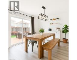 Step into an inviting foyer featuring ceramic tile, single front door w/glass insert and single front hall closet. From there, proceed to the living room, complete with laminate flooring and two double windows adorned with white shades. Next, enter the bright eat in kitchen, equipped with a suite of four appliances and elegant dark wood cabinetry, double stainless steel sink, sliding door access to the backyard and the formal dining room joined making this a versatile and large space. On the main floor, you will also find convenient access to a single-car garage with an automatic door opener and storage shelving, along with a two-piece bathroom for guests. Ascend the staircase, featuring a new runner, to discover 3 well-appointed bedrooms. The primary suite is generously sized, featuring a large window and a walk-in closet. The additional 2 bedrooms are also spacious, each with double closets and double windows. The upper level includes a convenient walk-in laundry room equipped with a washer and dryer, as well as a four-piece bathroom complete with a double-wide vanity, single sink, tub-shower combination with ceramic backsplash. The partially finished basement awaits your personal touch, offering a recreation room and potential office or bedroom space, along with abundant storage options. Outside, enjoy a fully fenced, oversized backyard featuring a lovely wood deck that leads down to a concrete patio. The front yard provides a single-car driveway, a charming front porch, a combination of brick and vinyl, complemented by beautifully landscaped perennial gardens. A concrete walkway runs alongside the house, enhancing accessibility and curb appeal all located on a family-friendly street. This property is perfect for families seeking comfort and convenience in a desirable neighbourhood. *Some photos contain AI technology. (id:50886)
