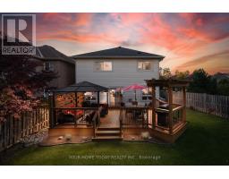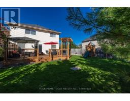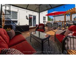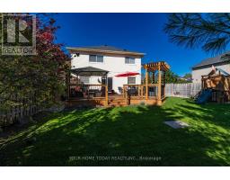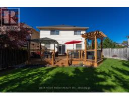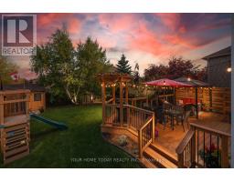 An inviting covered porch welcomes you into this lovely family home that has been updated with attention to detail and a designer flair. The main level features stylish flooring, pot lights and tasteful finishes throughout. The kitchen enjoys neutral white cabinetry, subway tile backsplash, breakfast bar, pantry and walkout to a party-sized deck overlooking the nicely landscaped and very private yard. A large dining room with corner gas fireplace is ideal for entertaining a crowd while the sun-filled living room (open to the breakfast area) is perfect for family time. A nicely updated powder room and garage access complete the level. The upper level offers the same flair and attention to detail found on the main level with three spacious bedrooms and two full bathrooms. The primary bedroom enjoys a luxurious 3-piece ensuite and a superb walk-in closet with built-in shelving and two separate pocket doors. Two remaining bedrooms share the nicely updated 4-piece bathroom. An office nook/den overlooking the staircase completes the level. The lower level, also decorated with a designer flair, adds to the living space with a rec room featuring an eye-catching built-in fireplace, an enviable laundry room and plenty of storage/utility space. For your outdoor fun - the backyard offers a huge deck with privacy panel, pergola and gazebo overlooking the large pie-shaped yard complete with mature trees and lovely gardens. A good-sized shed and play structure add to the enjoyment. Wrapping up the package is the well-equipped garage with attached shelving, loft storage and slatwall panels for added convenience. Located in a quiet family friendly neighbourhood just steps to community sports field, park and trail and close to Trafalgar Sports Park, schools, hospital, fairgrounds, downtown shops, library and more. Easy access to main roads for commuters is a bonus! (id:50886)