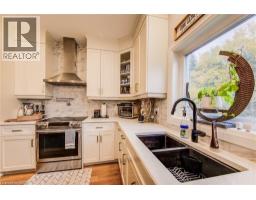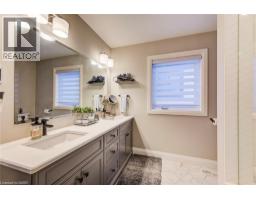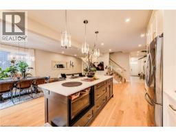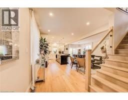 This stunning, former Crescent model Home in Doon Crossing is complete top to bottom with luxury finishes. No item has been overlooked when it comes to this beautifully finished, Dundee B model in South Kitchener, complete with a walkout basement with a bedroom and a Kitchen, which makes it perfect for an in-law suite. Nestled amongst a private collection of custom homes, this 2-story home feels extremely lavish and spacious. Upon entry, you walk into a large foyer with ample storage and a 2-piece powder room. Once in the heart of the home, you will find a breathtaking kitchen with custom cabinetry with gold accents - including tall upper cabinets with crown moulding, quartz countertops, a massive island with pendant lighting, pot filler and tasteful backsplash. This kitchen is truly to die for. Adjacent to the kitchen, you will find a bright and open concept living room and a dining room, perfect for hosting friends and family. Rounding out the main floor is a separate office space for those working from home. Moving upstairs, you will find a custom staircase with glass panelling that leads you to the breathtaking master suite. The master suite is separate from the remaining 3 bedrooms on this floor, has two large walk-in closets and an ensuite you will never want to leave; it is complete with a soaker tub, walk-in shower with bench and a double vanity. The second floor has 3 other large bedrooms and another bathroom for the rest of the family, Heated flooring bathroom. Chapel Hill Court is 7 minutes to the 401, close to shopping and great schools. There are ample walking trails in the area, a golf course and Conestoga College. Every detail in this home is finished with class and quality. Large windows throughout the home on every level for natural light, and a gorgeous glass staircase leading you to the upper level. Landscaped tastefully, fully fenced private backyard with an upper-level deck backing onto a natural environment. This home is a must-see! (id:50886)