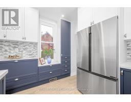 Welcome to this renovated detached house, on a large lot in downtown Oshawa! Looks as good in reality as it does in photos - please book your visit! Features 4 bedrooms; 2 bathrooms; new kitchen with new appliances; taller ceilings on main floor; open concept dining room; walkout to a south-facing large deck; private driveway with 4 parking spots; fenced backyard with ample space for kids, gardening, pets or anything requiring a large, flat, secure lot; large shed that can be used as storage or workshop. Kitchen is brand new with quartz tops, stylish backsplash, stainless steel appliances and a lot of functional storage and functional workspace. Cabinets are high quality, two-tone scheme, all custom made. Bathrooms are fully renovated with modern design touches, cabinets and accessories. The fourth bedroom and bathroom on the main floor offers flexibility to a family, and or an investor; so does the full, clean, insulated basement with laundry, storage, and secluded office space (currently). Very close to schools, close to downtown higher education institutions campuses, downtown entertainment and amenities; major shopping is a short walk away; major transit is on next streets over, hospital and park. Most renovations are either new as of 2025 or very recent. (id:50886)