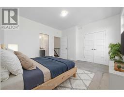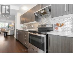 Modern 2015-built 3-bed, 4-bath semi in a prime location with quick highway access to downtown and many amenities. Freshly painted throughout, the main level features a tiled foyer, bedroom or home office, full bath, and access to the very oversized garage. Open-concept second level offers 9-ft ceilings, hardwood floors, pot lights, and large windows bringing in tons of natural light. Stylish kitchen with quartz counters, island, backsplash, stainless steel appliances, and access to a private balcony. Very spacious living and dining areas and a powder room complete the 2nd level. Upper level includes two bedrooms, each with an ensuite, plus convenient laundry. Basement offers plenty of storage. Walking distance to shops, schools, and transit. (id:50886)
