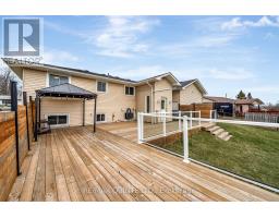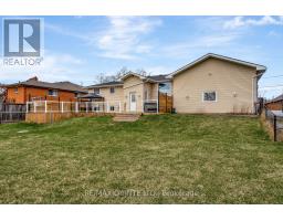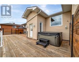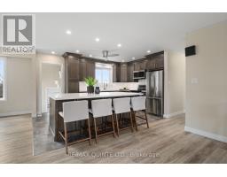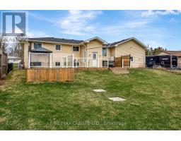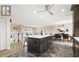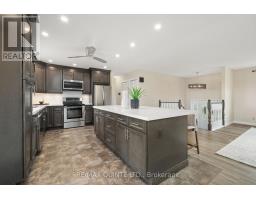 This beautifully updated raised bungalow sits on a rare, oversized lot in town and offers the perfect blend of space, style, and flexibility. The open-concept main floor features a stunning custom kitchen (2023) by Kenzie Dream Kitchens with solid maple, ceiling-height cabinets, quartz countertops, a large island, under-cabinet lighting, and stainless-steel appliances. Vinyl plank flooring runs throughout, and the main level includes two spacious bedrooms, including a primary with ensuite, plus an additional full bath with double sinks and a walk-in shower. The finished lower level adds incredible potential with two more bedrooms, a full bath, large rec room with gas fireplace, and a second kitchen ideal for in-laws, guests, or a rental unit with separate entrances from both the garage and backyard. Outside, enjoy a fully fenced yard with tiered decks, a hot tub, gazebo, fire pit, and space to garden. A triple garage with high-track bay and a driveway that has parking for 10+ vehicles. Conveniently located close to highway 401, shopping and more! (id:50886)
