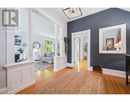 Escape to Elora and discover one of the village's most iconic homes. Built by the town's original mill owner around 1900, this nearly 3,500 sq ft heritage home blends timeless character with modern comfort - just steps from Downtown. With soaring ceilings, oversized principal rooms, and large windows, this home is flooded with natural light and an incredible sense of space. Solid hardwood floors, stained glass accents, and beautiful pocket doors highlight the craftsmanship of a bygone era, thoughtfully preserved throughout. The renovated kitchen features stone counters, premium finishes, and a generous island that flows effortlessly into both the formal and informal living areas. Upstairs, the timeless and luxurious primary suite offers a true retreat, complete with a stunning ensuite bathroom and a massive walk-in closet/dressing room. Two additional generous bedrooms offer comfort and privacy and as an added bonus - a third story loft adds even more space for guests, work, or play. Outside, imagine yourself enjoying a cup of tea on the wraparound front porch, perfect for peaceful mornings and neighbourly chats. The pool-sized backyard is beautifully landscaped with mature trees (one with a swing!), hardscaping, firepit, two decks, and a hot tub for year-round enjoyment. Deep historical roots, unbeatable curb appeal, and a walkable location just beyond the tourist path, this is a rare opportunity to own a piece of Elora's living history. (id:50886)