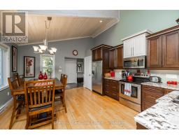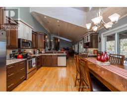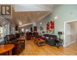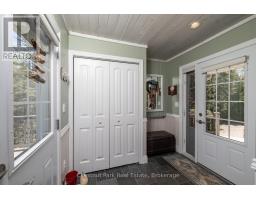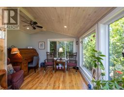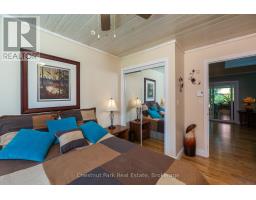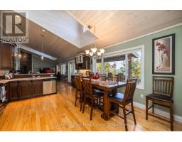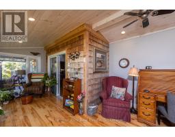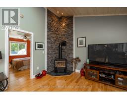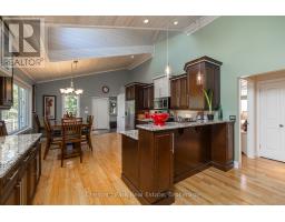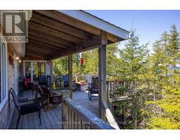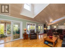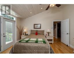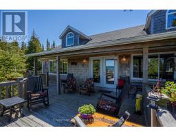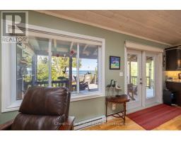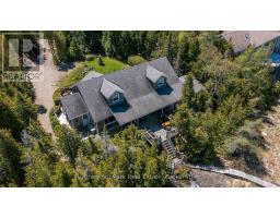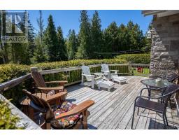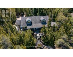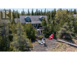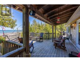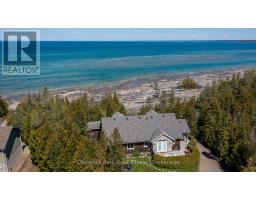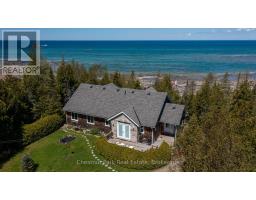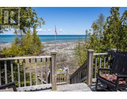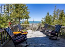 Tranquil Waterfront Retreat Near Tobermory. Escape to serenity with this private year-round 3-bedroom, 2-bathroom waterfront home, designed for both comfort and style. Situated on a stunning shoreline, you'll enjoy breathtaking lake views from nearly every room and the expansive wraparound deck is perfect for sunsets, morning coffee, bird watching & stargazing. Inside, the modern open-concept layout is enhanced by vaulted wood ceilings with bright dormer windows, gleaming maple hardwood floors, and a dramatic gas fireplace anchoring the spacious living area. The kitchen features rich cabinetry, granite countertops, and stainless steel appliances, making it a dream for any home chef. A 4-season sunroom offers the ideal space for a home office or cozy reading nook, set apart from the main living areas. The primary suite includes a generous walk-in closet, marble-tiled ensuite, and direct access to the deck. Additional features include central vacuum, main floor laundry, full back up generator power and a detached 1.5-car garage with water hookup. Beautiful perennial gardens surround the property, offering natural beauty and privacy while just a short drive from the charming village of Tobermory. (id:50886)