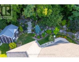 This beautiful freehold detached home backs onto the escarpment and combines an upscale living with natural outdoor beauty. This home will surprise you with over 2,000 square feet of total finished living space and its bright, modern open-concept design. The main floor features stunning hardwood floors, vaulted ceilings, pot lights, the main foyer has direct entry from the garage, complete with mezzanine with storage and a two piece bath. The heart of the home is the modern kitchen, perfect for entertaining, with stainless steel appliances, a large island, and a seamless flow into the dining and living area with walkout to the rear deck and professionally landscaped backyard. The main level also has the primary bedroom which boasts a spa-like ensuite with walk-in shower and large closet with built-ins, then there is a second good sized bedroom also with a large closet. The fully finished lower level offers expansive additional living space, with a bright family room with gas fireplace, two more bedrooms, another full bathroom, laundry, utility room and more storage space. Relax in the backyard with a private deck and awning surrounded by beautiful professionally landscaped yard and a large storage shed. Green Ridge Estates is a quiet friendly freehold community (no condo fees) with walking distance to downtown shopping, parks, the library, and is also close to the Julie McArthur Recreational Centre. Do not miss the chance to experience simple, luxury living. (id:50886)