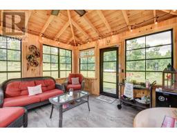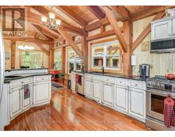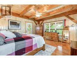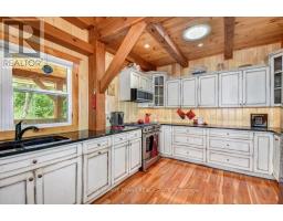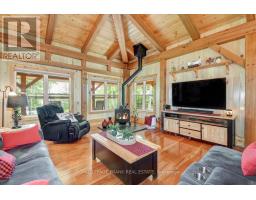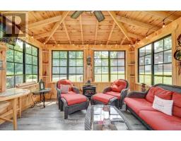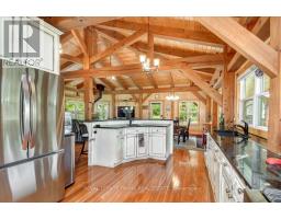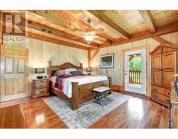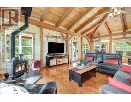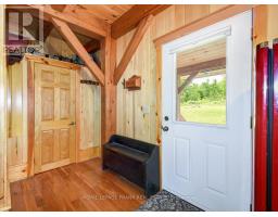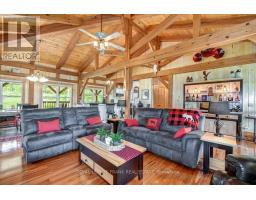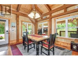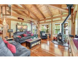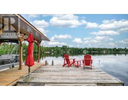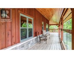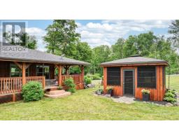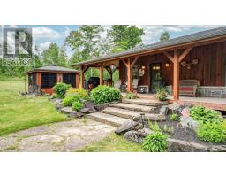 Steenburg Lake! The complete package and more! This Timber Frame home is sure to impress. Amost 1800 square feet of living, with a full wrap around porch, perched perfectly over looking beautiful Steenburg Lake, with clean waterfront, all sitting on 86 acres of land with trails throughout. The waterfront is across the paved cottage road with a large dock system and newer floating boat house, big enough for a 22ft pontoon boat. There is a 30x40 heated shop, with drop down screen door system and a large covered area for extra storage. Hangout in the screened gazebo or chill on the wrap around porch. Extra features include: auto generator, central air, high efficiency furnace, underground sprinklers, alarm system with cameras, stainless appliances, hardwood flooring, a small pond with fountain and so much more. Recent upgrades include furnace, central air, roof and eavestroughs. This is a legacy type property that will be hard to match. Come take a look and you won't want to leave!! (id:50886)