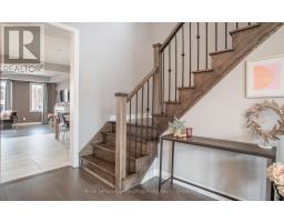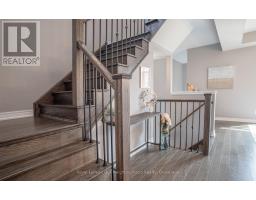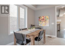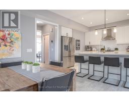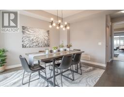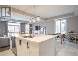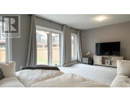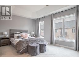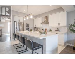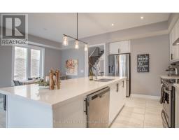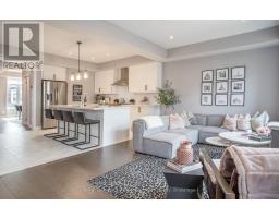 Welcome to this stunning Barrington Model end-unit townhome, perfectly positioned with an inviting east-facing entry in one of the areas sought-after and rapidly growing family neighbourhoods. Enjoy exceptional convenience just minutes away: Highways 401, 412, and 407, top-rated schools, shopping, dining, and the renowned Thermea Day Spa. This beautifully appointed home showcases an array of luxury upgrades, including elegant coffered ceilings and smooth ceilings on the main floor. The kitchen impresses with a 3/4" double-edge countertop, upgraded tile, backsplash, a deep fridge upper cabinet, S/S Appliances, a striking wall-mounted chimney range hood. Pot lights adorn the ceilings in the kitchen and great room. A gas BBQ line for seamless outdoor entertaining. The primary ensuite features an upgraded shower, stand alone deep soaker tub creating a spa-like retreat. Hardwood floors add warmth and sophistication. The flexible layout adapts to your lifestyle; currently, the living room is styled as a dining room, and the fourth bedroom serves as a recreation space. Direct garage access from the laundry room adds convenience, and the fully fenced west-facing backyard offers privacy. Move-in ready and thoughtfully designed, this home delivers the perfect balance of luxury, comfort, and versatility. Room Measurements from Builder's Floor Plans. Flexible Closing Available. Don't wait on this one!! (id:50886)