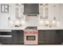 Welcome to this Fabulous Executive town home built by award winning 'Kylemore Communities'. Beautiful crescent location with garden backing on to protected forest, steps to walking trails. 3 Bedrooms, 2.5 Baths Approx. 2535 sq. ft. Stunning Custom two tone kitchen with upper display glass cabinets, box hood canopy, large Island with breakfast bar & waterfall feature. Quartz Counters & backsplash. Upgraded floor tiles. Built in S/Steel Sub-Zero/Wolf/Bosch appliances, upgraded sink & faucet, built in panty. Extra cabinets in servery plus walk in pantry. Large living/dining with French doors to front terrace. Walk out to deck from large breakfast family room with modern fireplace. 5" hardwood throughout, hardwood stairs and black iron pickets throughout. Laundry room & recreation room on ground level, access to 2 car garage. Primary bedroom has French door to balcony, his/her closets, ensuite, double sinks, glass shower & built in tub. Unfinished Walk out basement with Large window, R/In bathroom. Upgraded tiles throughout, 30 Pot lights & cornice moldings. Close to walking trails, parkland, recreation centre, transit, Angus Glen Golf course. Good schools. Great neighbourhood! (id:50886)