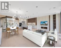 Luxury, perfected. A Montbeck Developments masterpiece yours to move into today! This masterfully designed open-concept home exudes sophistication with white oak flooring, soaring ceiling heights, and floor-to-ceiling windows that flood the interiors with natural light. Seamless indoor/outdoor living is achieved with the living room, dining room, and kitchen each opening to a partially covered balcony patio perfect for year-round enjoyment. At the heart of the home, the bespoke designer kitchen makes a bold statement in both form and function. Outfitted with top-tier Fisher & Paykel appliances, exquisite quartz countertops with full-height backsplash, and an oversized waterfall island, its an entertainers dream. An abundance of thoughtfully integrated storage enhances both style and practicality. The adjoining living and dining spaces radiate sophistication and warmth, featuring custom millwork and a sleek linear electric fireplace that serves as a striking focal point. The primary suite boasts a spa-inspired ensuite with soaker tub, glass shower, dual-sink vanity, and a fully customized walk-in closet with illuminated built-ins and tailored cabinetry. Three additional bedrooms each offer custom desks, built-in closets, and stylish ensuites with designer finishes. The finished lower level expands the living space with a large family/recreation room, 3-piece bath, radiant heated floors, a wet bar, and a rough-in for a home theatre or fitness studio. Additional features include a versatile front room for office or formal living, integrated ceiling speakers, and an attached garage with a striking black-tinted glass door. (id:50886)