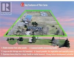 Rare 7-Acre Income-Generating Farm — Future Urban Edge of Hamilton! Incredible opportunity to own a revenue-producing farm just steps from Hamilton’s urban expansion zone — With the possibility of city sewer and water services being installed soon! Perfect for investors, entrepreneurs, or anyone seeking a self-sustaining property with major upside. Land & Buildings: • 7 Acres | 3,700 ft² 4-Bedroom Home | 9,250 ft² Barn | 150kW Solar Roof Project. • Dual driveways and ample parking. Multiple Income Streams: A. Greenhouse Operation: 7 greenhouse permits (1 built, 2 foundations ready), fenced zone with year-round asphalt driveways, all structural components included. B. Chicken Processing Facility: 2,000 ft² licensed processing area, TRQ-eligible under CUSMA/WTO/TPP, ~$100,000/year income potential. C. Solar Energy: FIT1 project generating ~$125,000/year at $0.713/kWh, contract secured until Oct 2035 — 10.5 years of guaranteed income. D. Additional Rental Income: 7,000 ft² of indoor storage space inside the barn — perfect for leasing to farm businesses or storage needs. The Home: Spacious 4 Bedrooms | 2.5 Baths | 2 Kitchens (ideal for multi-gen living or farm staff), antique marble fireplace, hardwood/tile floors, bonus room above garage, new roof (2024). Water & Utilities: City water delivery (cistern), septic system, and two 50-ft deep wells (house irrigation + barn automation) Future Growth: Located directly along Hamilton’s official expansion boundary — ready for major appreciation as urban development moves closer. Bonus: The senior and experienced owner is willing to fully train the new buyer in all aspects of the business and property management — hoping to pass on his legacy and see this thriving operation grow even stronger. Ideal for: Investors, commercial farmers, poultry processors, greenhouse operators, and lifestyle buyers seeking a rare blend of income and long-term growth. (id:50886)