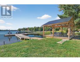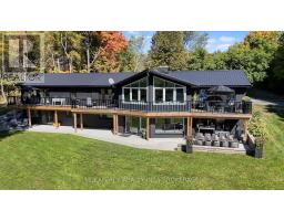 Welcome to your private lakefront sanctuary - where elegance, scale, and serenity meet. Set on 3.8 acres of wooded privacy and boasting an impressive 259 feet of natural Beaver Lake shoreline, this extraordinary retreat offers over 5,000 square feet of finely renovated living space. Tucked into a tranquil bay, you'll enjoy peaceful waters free from heavy boat traffic, all while being part of a warm, welcoming community. A long circular driveway makes a grand approach, leading you to the homes timeless exterior and detached heated garage. Step inside and feel the airiness of soaring 12-foot cathedral ceilings, expansive windows, and wide-plank floors that capture every angle of the lake. The open living space blends comfort and sophistication, anchored by a cozy wood burning fireplace and panoramic water views. The chefs kitchen is a showpiece in itself, featuring a quartz waterfall island, built-in appliances, and seamless flow into the dining area. Open the 12-foot glass wall to step onto the deck -perfect for morning coffee among the trees or golden sunsets over the lake. With 6 bedrooms and 5 bathrooms, this home was designed for hosting family and guests in total comfort. The main-floor primary suite is a private retreat with a spa-inspired ensuite, soaker Jacuzzi, glass shower, and walkout to its own deck. Additional bedrooms, including a secondary ensuite, provide ample space for visitors. The walkout lower level expands the living space with a bright recreation room, office, second laundry, four additional bedrooms, a full bath, and generous storage. Step outside to your private waterfront oasis: a T-shaped dock for swimming and boating, a gazebo for shady afternoons, and a charming bunkie for weekend guests. This is more than a home - its an elevated lifestyle. Privacy, scale, modern design, and natural beauty come together in perfect harmony. (id:50886)