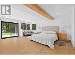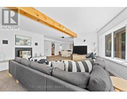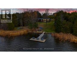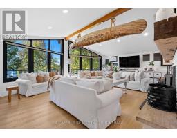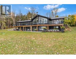 Welcome to your private lakefront sanctuary - where elegance, scale, and serenity meet. Set on 3.8 acres of wooded privacy and boasting an impressive 259 feet of natural Beaver Lake shoreline, this extraordinary retreat offers over 5,000 square feet of finely renovated living space. Tucked into a tranquil bay, you'll enjoy peaceful waters free from heavy boat traffic, all while being part of a warm, welcoming community. A long circular driveway makes a grand approach, leading you to the homes timeless exterior and detached heated garage. Step inside and feel the airiness of soaring 12-foot cathedral ceilings, expansive windows, and wide-plank floors that capture every angle of the lake. The open living space blends comfort and sophistication, anchored by a cozy wood burning fireplace and panoramic water views. The chefs kitchen is a showpiece in itself, featuring a quartz waterfall island, built-in appliances, and seamless flow into the dining area. Open the 12-foot glass wall to step onto the deck -perfect for morning coffee among the trees or golden sunsets over the lake. With 6 bedrooms and 5 bathrooms, this home was designed for hosting family and guests in total comfort. The main-floor primary suite is a private retreat with a spa-inspired ensuite, soaker Jacuzzi, glass shower, and walkout to its own deck. Additional bedrooms, including a secondary ensuite, provide ample space for visitors. The walkout lower level expands the living space with a bright recreation room, office, second laundry, four additional bedrooms, a full bath, and generous storage. Step outside to your private waterfront oasis: a T-shaped dock for swimming and boating, a gazebo for shady afternoons, and a charming bunkie for weekend guests. This is more than a home - its an elevated lifestyle. Privacy, scale, modern design, and natural beauty come together in perfect harmony. (id:50886)