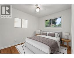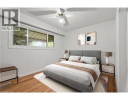Welcome to this well-maintained 3-bedroom 1.5 bath bungalow, lovingly maintained by the original owners. Located in a highly sought-after Hamilton Mountain Buchanan park neighbourhood! Situated on a generous 56 x 105 ft lot, this home offers a single-car garage with inside entry and a 2-car driveway, fenced private yard with concrete patio, shed, finished rec room in the basement with bar, and Napoleon gas fireplace. Enjoy the convenience of being close to amenities including elementary schools, public transit, Westmount Recreation Centre, Mohawk College, grocery stores, restaurants, and more. Updates include windows, a/c unit (2023), stainless steel kitchen appliances, roof shingles approx 8 years old, recently refinished hardwood floors and freshly painted in the living room and bedrooms. Convenient separate side entrance – ideal setup for a future in-law or secondary suite. Perfect for families, first-time buyers, or investors—don’t miss this incredible opportunity in a prime location! *Select photos virtually staged to show potential layout. (id:50886)
