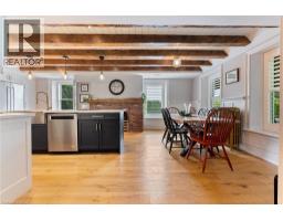 Homes today don’t feel like this. That’s because this one is packed with 178 years of character and charm affectionately known as Langside/Jacob Smith House. Wrapped in nearly 30,000 square feet at the edge of The Niagara Escarpment, this lot offers more than privacy - it is a statement! This modern farmhouse still hums with the rhythm of its past, while renovated with intention by Heartwood Renovations (@heartwoodrenovations) to suite your everyday needs. Modern quartz surfaces, gas range cooking, chef-inspired eat-in kitchen, a sprawling island, premium appliances, and a generous walk-in pantry located just off the convenient mud room entrance. Thoughtful touches in every square inch including a large covered front porch which offers the perfect spot to enjoy morning coffee or an evening nightcap all encircled by working farmland, the 104 x 280 lot breathes with the rhythm of the land. Wide, Still and Ready for your next chapter. Engineered hardwood flooring flows throughout, accented by exposed beams. Enjoy a spacious living room illuminated by pot lights and anchored by one of two inviting gas fireplaces. The bright family room, located in the rear extension, offers the perfect space for casual relaxation or entertaining guests. In addition, the well-equipped main floor laundry room with built-in storage adds functionality and everyday ease. Both children's bedroom includes a built-in desk, while the primary suite offers an abundance of natural light that pours through the large windows, along with two built-in closets. Additional highlights include central vac, an attached 1-car garage with inside entry, two electrical panels (home & garage), and ample built-in storage throughout. UNIQUE FEATURE: Includes an authentic root cellar. It stood the test of time. Now it’s your turn to shape what comes next! (id:50886)
