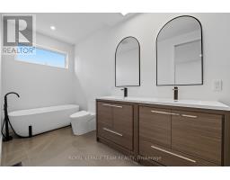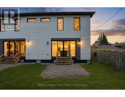 This custom semi at 984 Watson blends modern design, and low maintenance luxury with everyday function and flexibility - Featuring over 2,900 sq.ft. of living space, 4 beds, 4 baths, and an attached garage with inside entry. The main level showcases a modern open concept layout anchored by a two-tone kitchen (waterfall island, quartz counters, double wall ovens, sleek cooktop, under-mount island sink) set against large-format polished porcelain and pot lights; dining flows to a bright great room with a linear feature fireplace and oversized black-framed sliders to the yard, while a statement open-riser staircase elevates the architecture and a mud/laundry plus powder room keep life effortless. Upstairs, wide-plank wood floors lead to a bright office area / loft, and three generous bedrooms, including a primary retreat with a custom walk-in closet with built-ins, and spa-style ensuite (double vanity, freestanding soaker, oversized glass shower); a chic family bath adds an oversized shower with rain head + body jets. The lower level offers incredible flexibility, designed with a self-contained suite complete with private exterior entrance, living area, 4th bedroom, full bath, and kitchenette/wet-bar. Perfect for multi-generational living, an in-law suite, teenage retreat, home office, or private rental income unit. Prefer single-family living? The space can easily be re-opened to extend the main home's lower level.Step outside to enjoy an easy-care yard and unbeatable convenience: minutes to IKEA, Bayshore Shopping Centre, good schools, Algonquin College, and Hwy417, with fast transit at Pinecrest Station on the east-west LRT extension; parks, the Ottawa River Pathway, Elmhurst Park, Frank Ryan Park, and Britannia Beach are all close by. Disclosure: Sale is conditional upon final registration of the approved severance. Conditional consent has been granted, and municipal requirements have been satisfied. Final registration is in progress with the Seller's lawyer. (id:50886)