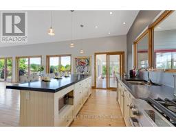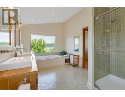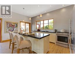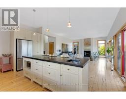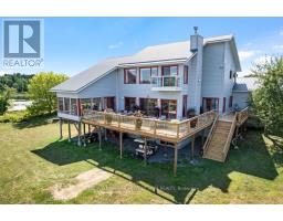 On Upper Rideau Lake, private peninsula with 19 acres, 3,860 feet waterfront and visits from herons, ospreys, ducks and geese. The big and beautiful walkout bungalow is exquisite. Lush colorful perennials follow the walkway to front porch where wide eye-catching double doors are most welcoming. Grand foyer has soaring 24' ceiling, elegant chandelier and convenient coat closet. The 4+1 bedroom and 7 bathroom home offers endless space, including four bedrooms with their own spa-like ensuites. Living-dining room wood-burning fireplace accented with a slate hearth. Full wall of windows provide you with phenomenal views. Gourmet kitchen clear sightlines and tasteful style with shaker cabinets, long 9' island-breakfast bar, 5-burner stove plus huge casement windows framing scenic outdoors. Three-season sunroom features cascading Weatherall windows, patio doors to screened porch and another set of patio doors to huge deck. Main floor powder room and three bedrooms, each with ensuites. One of the bedrooms opens to screened porch. Entire second floor palatial primary suite with vaulted ceiling, propane fireplace and wall of windows overlooking lake. Primary suite also has balcony, walk-in closet, 5-pc ensuite double-sink vanity, glass shower & soaker tub. Walkout lower level, built above ground with large windows, so it's full of light. Lower level familyroom, bedroom, 3-pc bath, laundry centre and door to attached equipment-storage garage. Home has new 2022 metal roof & exterior hi-end CanExel siding. Generac generator. Walking trails meander thru the peninsula and go by numerous varieties of apple trees. One side of the peninsula has 2023 dock with clear waterfront for swimming. Other side natural setting attracting song birds and chirping frogs. Located on paved township maintained road, with mail delivery and garbage pickup. Hi-speed and cell service. Just a walk to Westport or 25 min drive to Perth. (id:50886)
