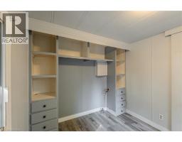 $569.92 MonthlyWelcome to this charming modular home, perfectly situated on a mature lot in a well-kept community. The exterior has been beautifully updated with vinyl siding and stone accents, complemented by a stone patio and low-maintenance composite decking—ideal for enjoying the outdoors. Step inside to find a cozy living room highlighted by a unique stained-glass window, a bright kitchen with updated countertops and backsplash, and a spacious four-piece bath with space for added laundry. The home features a comfortable bedroom with built-in storage cupboards for added convenience. Parking is available for up to three vehicles, with paved walkway and attractive landscaping. Park fees of $569.92 include property taxes, community water and septic; maintained by the park, providing peace of mind and ease of living. Paved roads and natural gas service is to be completed by the park at a later date, adding even more value to this property. A wonderful opportunity for downsizers or first-time buyers looking for affordable, low-maintenance living. (id:50886)