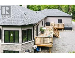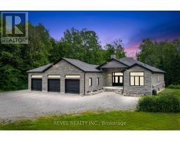 Welcome to 48 Private Acres of Custom Luxury Living. Experience the perfect blend of modern design and country tranquility in this stunning, newly built 5-bedroom, 3-bath custom home set on 48 spectacular acres just steps from Balsam Lake and the shops and restaurants of Fenelon Falls. Step through the front door and be greeted by soaring vaulted ceilings, a dramatic floor-to-ceiling stone fireplace, and expansive picture windows framing serene forest views. Open-concept kitchen, living, and breakfast area is an entertainers dream, featuring floor-to-ceiling cabinetry, a grand quartz island, double built-in stainless-steel fridge/freezer, and a walk-in pantry. A walkout leads to a spacious deck with a hot tub, creating seamless indoor/outdoor living. The generous primary suite offers a peaceful escape with a walkout to the deck, spa-style ensuite with glass shower and double vanity, and a walk-in closet. Two additional bright bedrooms on the main floor each offer picturesque views. Fully Finished Lower Level. The light-filled lower level is designed for comfort and versatility, boasting two more bedrooms, a full bath, a cold cellar, and a bonus recreation/man-cave area with a propane/wood-fired furnace. A convenient walk-up leads directly to the immaculate three-car garage. This property offers endless possibilities: enjoy the private pond, explore the expansive acreage, or make use of outbuildings for hobbies, storage, or future projects. A large mudroom/laundry area provides inside access to the garage with space for a potential extra bath. Acres of ultimate privacy and natural beauty Steps to Balsam Lake and charming Fenelon Falls Ideal for family living, entertaining, or creating your dream country estate. This extraordinary property is the perfect combination of craftsmanship, comfort, and convenience. Dont miss your chance to experience the pride of ownership and exceptional finishes a must see to fully appreciate. (id:50886)