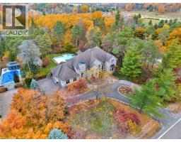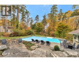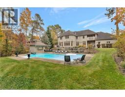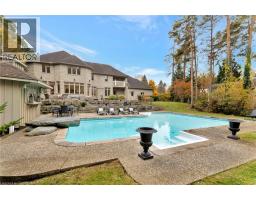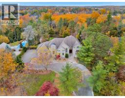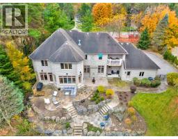 Deer Path Estates. A breathtaking two-storey stone home with approx. 5,800 sq. ft. of beautifully finished living space, a triple-car garage & set on nearly 1.0 acre of private, tree-lined property. Located on a quiet and highly sought-after neighbourhood. The backyard is a private oasis, featuring a heated, saltwater in-ground pool surrounded by lush greenery & impeccably landscaped. The pool is equipped with a new filter, pump, saltwater T-cell & flooring cleaning system (2020) for easy maintenance. The expansive yard is perfect for outdoor activities & entertaining. The updated kitchen is a chef’s dream with heated floors, oversized granite countertops, a built-in microwave drawer & premium Thermador appliances, incl a gas range & dual ovens. It’s a welcoming space for family meals and gatherings, designed for both functionality and style. The main-floor office impresses w/ built-in cabinetry and two-storey windows, creating a bright and inspiring workspace. Upstairs, four spacious bedrooms each feature their own en-suite bathroom, offering privacy & convenience for the whole family. The primary suite includes a fully remodelled 5-piece en-suite with heated floors, a walk-in closet, a balcony to take advantage of the gorgeous views & a loft area ideal for a dressing room or upstairs office. The fully finished basement caters to every need with a home theatre room complete with a projector & screen, a rec room, a games area. Built-in desks & ample storage add functionality to the space, making it perfect for work, play, and relaxation. The Basement features a walk-up to the triple car garage. Situated in a prime location, this home is just moments away from Shade’s Mill Conservation Area, scenic trails, Puslinch Lake & many more amenities. With its close proximity to Highway 401, commuting is effortless. Meticulously maintained & offering an unbeatable combination of luxury, comfort & convenience, this estate is truly a rare find. Book your private showing today! (id:50886)