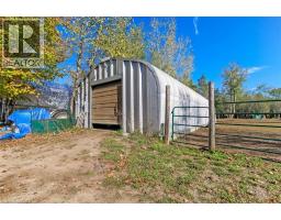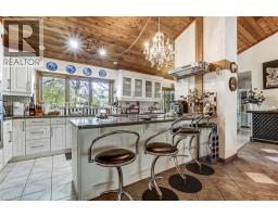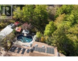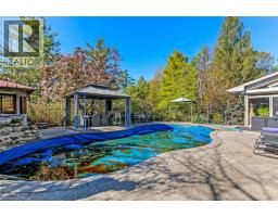 Fantastic 91.74 acre hobby farm in sought after Flamborough. The main residence is almost 3000 square feet with 4 bedrooms, 3 bathrooms, an inground salt water pool & so much more. The open concept living room, dining room & kitchen are perfect for entertaining featuring soaring cathedral ceilings, a stunning stone fireplace, updated kitchen with granite counters and patio doors to the sunroom, hot tub & gorgeous salt water pool with a waterfall & outdoor fireplace. The large primary suite has an ensuite bath with a jetted tub & double shower, a huge walk-in closet & room for king size furniture. The other 3 bedrooms are all a good size with spacious closets. The main 5pc bath has double vanities. There is another 3 pc bath conveniently located near the pool & main floor laundry. Infloor heating runs throughout the bedrooms, bathrooms, living & dining rooms. The attached 3 car garage was converted to additional seasonal living space & storage & could be converted back. A 2 car carport sits beside the house to keep vehicles out of the elements. The additional worker's residence is a mobile home with a septic system, hydro and water. There is also a cute bunkie with hydro and various other storage buildings on the property. The steel building for horses or cows has hydro and a few acres of paddock with electric fencing. The greenhouse needs some repair. This very private property is mostly wooded with trails winding through the various species of trees. Salt water pool installed in 2010 is solar heated, pump and vacuum replaced 2025. New drilled well in 2024. Property is being sold as is as part of an estate. (id:50886)