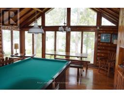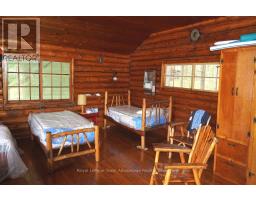 Exceptional Island and mainland property on Remote Bird Lake. A once in a lifetime opportunity to own an extraordinary island and mainland package on serene and secluded Bird Lake where only two other private properties exist. Surrounded by mature white pines and untouched natural beauty this unique retreat offers a true escape from the modern world. The island features a striking original log-constructed lodge anchored by a spacious great room with a natural stone fireplace, built-in bar and billiard table. A large kitchen with a breakfast area flows into a distinctive hexagon-shaped dining room offering panoramic views over the lake. Additional island structures include a dry boathouse and a traditional sauna building. A charming walkway connects the island to the mainland where four rustic log cabins provide additional guest accommodations. An ice house and generator are also included for off-grid convenience. Bird Lake is celebrated for its excellent smallmouth bass fishing and breathtaking surroundings. Access is by floatplane or rugged SUV via a logging road that reaches the northern end of the lake making this property the ultimate private getaway for anglers, nature lovers or those seeking something truly rare. (id:50886)