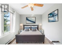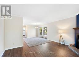 Amazing Value & Fantastic Location! Welcome to this beautifully updated upper end-unit stacked condo featuring 2 bedrooms, 2 bathrooms, and peaceful views of the surrounding green space - offering both privacy and tranquility.You'll love the prime location - just steps to top-rated schools, Jeanne d'Arc Plaza, parks, public transit, and scenic walking trails along the Ottawa River.Inside, an abundance of natural light pours in through multiple windows and a skylight, creating a bright and airy atmosphere. The spacious living room features a cozy wood-burning fireplace and access to your private balcony overlooking nature - the perfect spot for morning coffee. The dining area boasts a large bay window and elegant crown moulding, while the refinished staircase railing adds a stylish touch.The kitchen shines with refinished cabinets, generous windows, and a sunny eat-in nook. You'll also find an updated powder room and luxury vinyl flooring (2020) throughout the main level.Upstairs, the primary bedroom offers plenty of space and its own private balcony with relaxing green views. The second bedroom is well-sized, and the renovated main bath includes a deep soaker tub/shower combo. Convenient laundry and storage area with charming barn door access completes the upper level.This home blends comfort, style, and convenience in one beautiful package - an ideal choice for first-time buyers, downsizers, or anyone seeking an easy-care lifestyle in a fantastic neighborhood.Some photos have been virtually staged (id:50886)