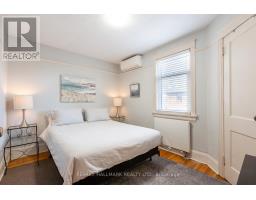 Steps to the Beach! Conveniently located a few houses up from the water, and shops of Queen/24 hr TTC at the top of the street - this location can't be beat. Welcome to this bright and inviting fully furnished 2-bedroom home that blends modern updates with timeless charm. Both spacious bedrooms include full closets, and the beautifully renovated bathroom features a sleek glass shower. The generous living room offers a warm and welcoming ambiance with a gas fireplace, charming stained-glass windows, pot lights throughout, ductless AC, and large west-facing windows that fill the space with natural afternoon light. Enjoy effortless indoor-outdoor living on the large covered west-facing private deck, perfect for alfresco dinners, evening wine, or peaceful morning coffees. The updated kitchen is equipped with stainless steel appliances and ample prep space for cooking and entertaining. Convenient in-house access to the basement provides shared laundry facilities, and parking is available for $100 per month. Heat and water are included; hydro is additional. Available for both short- or long-term rentals, this stylish, functional, and well-appointed home is ready for you to move in and enjoy! (id:50886)