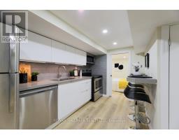 A stylish1 bedroom suite featuring vinyl flooring that seamlessly combines aesthetics and practicality. The modern kitchen is equipped with stainless steel appliances, elegant quartz countertops, and a convenient breakfast bar ideal for casual meals. The spacious bedroom features a generous double closet, offering ample storage space. Enjoy a beautifully designed three-piece bath, complete with an ensuite laundry for your convenience. This suite offers the unique advantage of two separate entrances, adding to its appeal. All utilities are included (heat, hydro, and water/waste), ensuring a hassle-free living experience. Additionally, 1 parking space is included and located in the laneway. The basement suite includes a private outdoor space on the side, in addition to access to a shared backyard. The Landlord will be responsible for landscaping and snow removal. Within walking distance to Metro, TTC, LA Fitness, and schools. (id:50886)