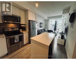 Welcome to Link Condos in Burlington's desirable Orchard community! On the top floor of this boutique building and overlooking the courtyard & escarpment. This modern 1 bedroom suite offers an open-concept layout with contemporary finishes, laminate flooring throughout , upgraded lighting and floor-to-ceiling windows for plenty of natural light. The kitchen features sleek cabinetry, full size stainless steel appliances, and a functional design with a centre island perfect for everyday living. Enjoy a private balcony with unobstructed views and room to relax. Unit includes 1 underground parking space and a locker for added convenience. Exceptional building amenities include a state-of-the-art fitness centre, wellness spa with sauna and steam room, hot/cold plunge pools, party room, rooftop terrace with BBQ area, and beautiful courtyard gardens.Located steps from Bronte Creek and its trails, shopping, dining, transit, and major highways-ideal for commuters and outdoor enthusiasts alike. A fantastic opportunity to live in a stylish unit in a well-managed, amenity-rich building. (id:50886)