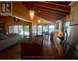 Prime, outer Georgian Bay island! 5.65 acres of picturesque Canadian Shield! Mature windswept pines abounding with wildlife! 2400 feet of granite rock shoreline offering spectacular vistas from any angle!! Full off grid seasonal living with this gorgeous property featuring a 2 bedroom, 3pc bath main cottage with full kitchen, family room with floor to ceiling stone fireplace, plus woodstove, both covered and open sun decks, outdoor shower and generator backup, plus guest cabin and master cabin! 2 bedroom guest cabin has its own kitchenette and living room space. Private master cabin features the master bedroom plus 3 pc bath and private deck. All offering panoramic open water views to the west allowing glorious sunset exposures! Be one of the very few who can spend their summers in this kayaker's paradise, exploring the outer shoals and near limitless Crown Land surrounding!!! With most all furnishings included with options on boats and toys, this property is ready to be enjoyed now!! (id:50886)