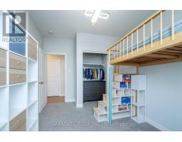 $375 MonthlyThis stunning 2-bedroom, 2-bath penthouse condo offers over $50K in premium upgrades and a bright, modern living experience. Featuring soaring 10 ft ceilings, 5.5 ft tall east-facing windows, and premium 5" engineered oak hardwood floors, the home is filled with natural light and high-end finishes. The upgraded kitchen includes quartz countertops, an extended island with breakfast bar, designer wall tiles, under-cabinet lighting, and an open hood fan. Both bedrooms feature plush dense broadloom with thick under padding, and the primary ensuite showcases oversized tiles and sleek modern fixtures. Additional highlights include extra dimmable pot lights, a larger-than-standard staircase, a spacious 6' x 15' balcony, and ample storage including a large linen closet and dedicated mechanical/storage room. With no neighbors above, this penthouse combines privacy, style, and comfort in an exceptional open-concept layout. (id:50886)