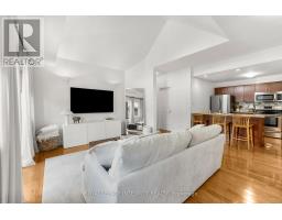 Welcome to carefree condo living in the highly sought-after community of Jackson Trails! This beautifully maintained upper unit is flooded with natural light thanks to its abundance of windows and soaring vaulted ceilings. With no rear neighbours and views of the trees, it offers a peaceful retreat just steps from all the amenities you need. The open-concept living and dining area features a full wall of windows, creating an airy, sun-filled space perfect for relaxing or entertaining. Rich hardwood flooring flows throughout the main living areas and both bedrooms, adding warmth and elegance. The kitchen is both stylish and functional, with stainless steel appliances, a sleek glass tile backsplash, a breakfast bar for casual dining, and convenient in-unit laundry access. The primary bedroom is a serene escape with a generous walk-in closet and a patio door that opens to tranquil treetop views, no rear neighbours to disturb your privacy. The second bedroom is also a great size, making it ideal for guests, a home office, or a cozy retreat. The large main bathroom offers both comfort and style, featuring a separate soaker tub and a walk-in shower. Off the living room, step out onto your private balcony, the perfect spot for morning coffee or evening unwinding. Located just minutes from shopping, restaurants, banking, schools, and transit, this home offers the best of both comfort and convenience. Whether you're a first-time buyer, downsizer, or investor, this bright and spacious unit checks all the boxes. Don't miss this opportunity to own in one of Stittsville's most popular neighbourhoods! (id:50886)