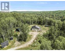 Approximately 105 acre property, in unorganized township, with off-grid home, built in 2017, for sale with 28ft by 36ft shop. This lovely home boasts 2 bedrooms and 2 bathrooms, a large living and kitchen area, heated by a propane space heater and wood cookstove. There is a large deck out front, covered porch area. The property has a drilled well and powered by a solar system and a septic system built in 2022. Property will be severed along east side of roadway prior to closing. (id:50886)