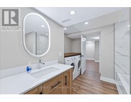 Welcome to this beautifully designed 2-bedroom, 1-bathroom basement home with stand-out features rarely found in lower-level homes. From the two dedicated parking spots, including covered garage parking, to the secluded rear patio and yard, this unit offers both convenience and comfort in equal measure.Inside, the thoughtful layout is packed with smart storage and functionality.The large eat-in kitchen is perfect for cooking and dining, featuring brand new all-white cabinetry, all new appliances, quartz countertops, and plenty of space to spread out.The generously sized great room is warm and welcoming, with large, sun-filled windows that make the space feel bright and airy.The oversized 4-piece bathroom includes a combined laundry area with a practical countertop above the full-size washer and dryer, ideal for sorting and folding, plus a designated space underneath to tuck away hampers and maintain a clean, streamlined look.Located close to all amenities, with an excellent walk score and easy access to public transit, this home offers the best of both convenience and connectivity.Perfect for those who appreciate extra space, modern finishes, and a thoughtfully designed layout. This fully renovated basement unit has never been lived in, a rare opportunity to enjoy a brand-new, private, and comfortable living space. (id:50886)