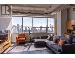 Lower Penthouse Hard Loft in the heart of King West. Experience true hard loft living with soaring 11-foot ceilings and sun-filled south exposure offering stunning city and lake views. Built from a former office building, this suite features thicker concrete construction for excellent sound insulation. Open-concept layout with sleek laminate flooring throughout. Enjoy the best of downtown living with shops, restaurants, and transit at your doorstep. (id:50886)