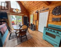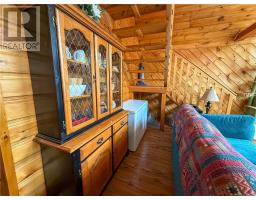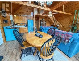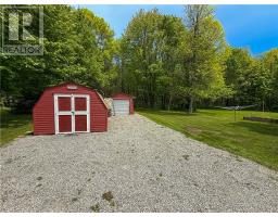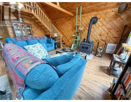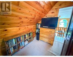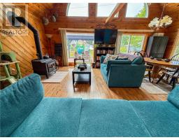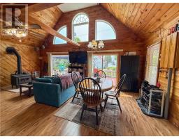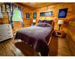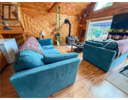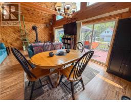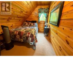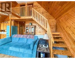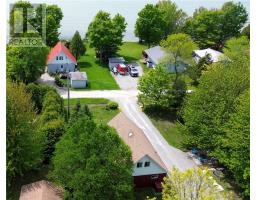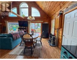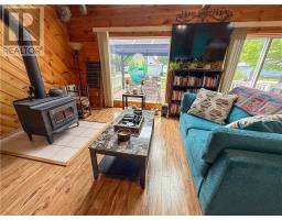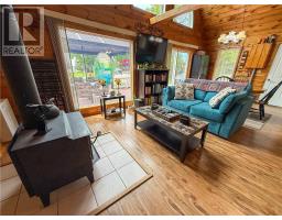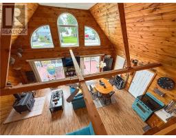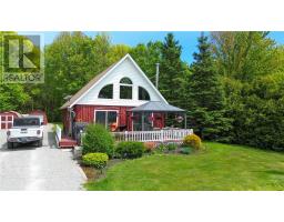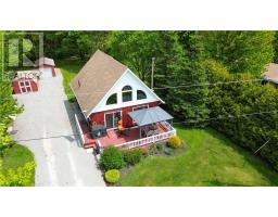 This charming 4-season A-frame style home or cottage on leased land offers a cozy and well-maintained retreat near beautiful Lake Mindemoya. The main floor features a thoughtfully designed open-concept layout combining the living room, dining area, and kitchen, all finished with easy-care laminate flooring. A large front window and patio doors leading to the front deck provide views of the lake and easy indoor-outdoor living. Public access just across the road allows for convenient enjoyment of the water. The main level also includes a bedroom and a full bathroom with tiled flooring and convenient laundry facilities. A wood stove in the living area adds warmth and charm, while the upper level offers two additional small bedrooms with carpeting, ideal for family or guests. The exterior boasts a flat, deep lot with well-kept flower beds, a workshop with hydro, and a large shed for additional storage. The rear of the property is private, backing onto undeveloped land with no rear neighbors. Recent upgrades include electrical improvements, wood stove and chimney updates. The log home sits on a crawl space foundation and is available fully furnished (with the exception of a few personal items) at an additional purchase price, making it move-in ready for your year-round enjoyment. (id:50886)
