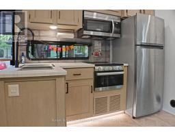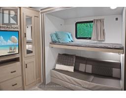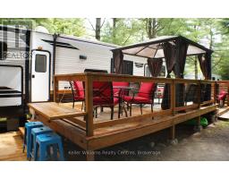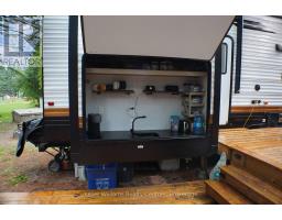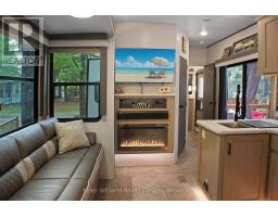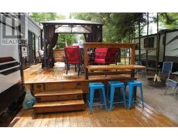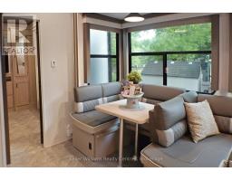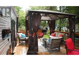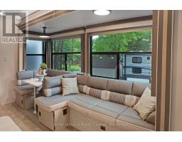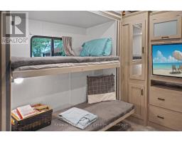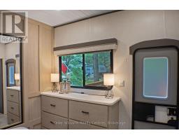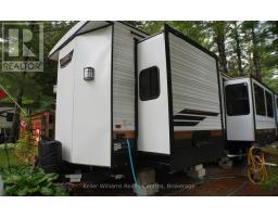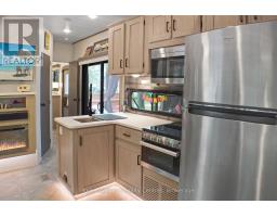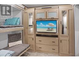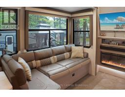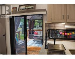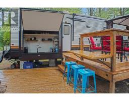 2023 Wildwood Lodge 42QBQ with extended warranty until 2029. This turn-key retreat is ready to enjoy, offering comfortable accommodations for up to 10 guests. The bright, open layout features a cozy fireplace, smart TV, accent lighting, and flexible seating and dining configurations with storage underneath. The farmhouse-style kitchen includes a residential fridge, pantry, and ample cabinetry. The spacious front bedroom offers excellent closet and drawer space, while the rear bunkhouse is designed for versatility set up with three bunks and a couch, or three bunks and a queen-sized bed. A 50 LED TV creates the perfect spot for gaming or movie nights, and the space could also be adapted as a home office or hobby area. The back bedroom includes its own powder room with direct deck access. Outdoor living is exceptional with a freshly sealed multi-level deck, screened gazebo with ceiling fan and side curtains, outdoor kitchen, bar top with stools, shed with fridge, BBQ, outdoor furniture, two kayaks, lawn mower, bicycles, and more all included. The park amenities are equally impressive with multiple playgrounds (including one behind the site), two indoor pools with hot tubs, a beach area with inflatables, dock space, boat rentals, general store, walking trails, outdoor games, and close proximity to the Black Horse Golf Course. This property combines comfort, flexibility, and unbeatable amenities ready to be enjoyed from day one (id:50886)