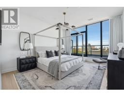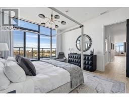 Welcome to this stunning southeast corner upper penthouse in the heart of Leaside, boasting sweeping city views, 10-foot ceilings, and floor-to-ceiling windows. Enter through diamond-patterned porcelain tile and a custom granite archway into the expansive great room, featuring custom fluted millwork, open shelving with Christian Lacroix wallpaper, and four seamlessly integrated frameless TVs. The south-facing balcony is perfect for entertaining, while the dining room offers a separate balcony and another Lacroix feature wall. The custom Trevisana kitchen dazzles with Calacatta marble countertops, Miele appliances, a 5-burner gas cooktop, and breakfast bar seating. The primary suite includes a private balcony, walk-in closet, and spa-like 6-piece ensuite. A guest bedroom offers its own walk-in closet and 3-piece ensuite. With black granite archways, glass walls, marble finishes, and elegant hardware throughout, this home is a true slice of heaven in the sky. (id:50886)