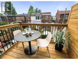 Recently renovated and beautifully finished, this stunning 3-bedroom, 2 full bath suite offers approx. 1,100 sq. ft. of stylish living space plus two private outdoor terraces. Nestled on a quiet, tree-lined street just steps to Christie Pits Park, Bloor St restaurants, shops, and transit. Features - hardwood floors throughout, Modern eat-in kitchen with stainless steel appliances, Private walkout balcony on the 2nd floor + expansive rooftop deck on the 3rd perfect for entertaining, Large west-facing windows fill the home with natural light, Convenient ensuite laundry. (id:50886)